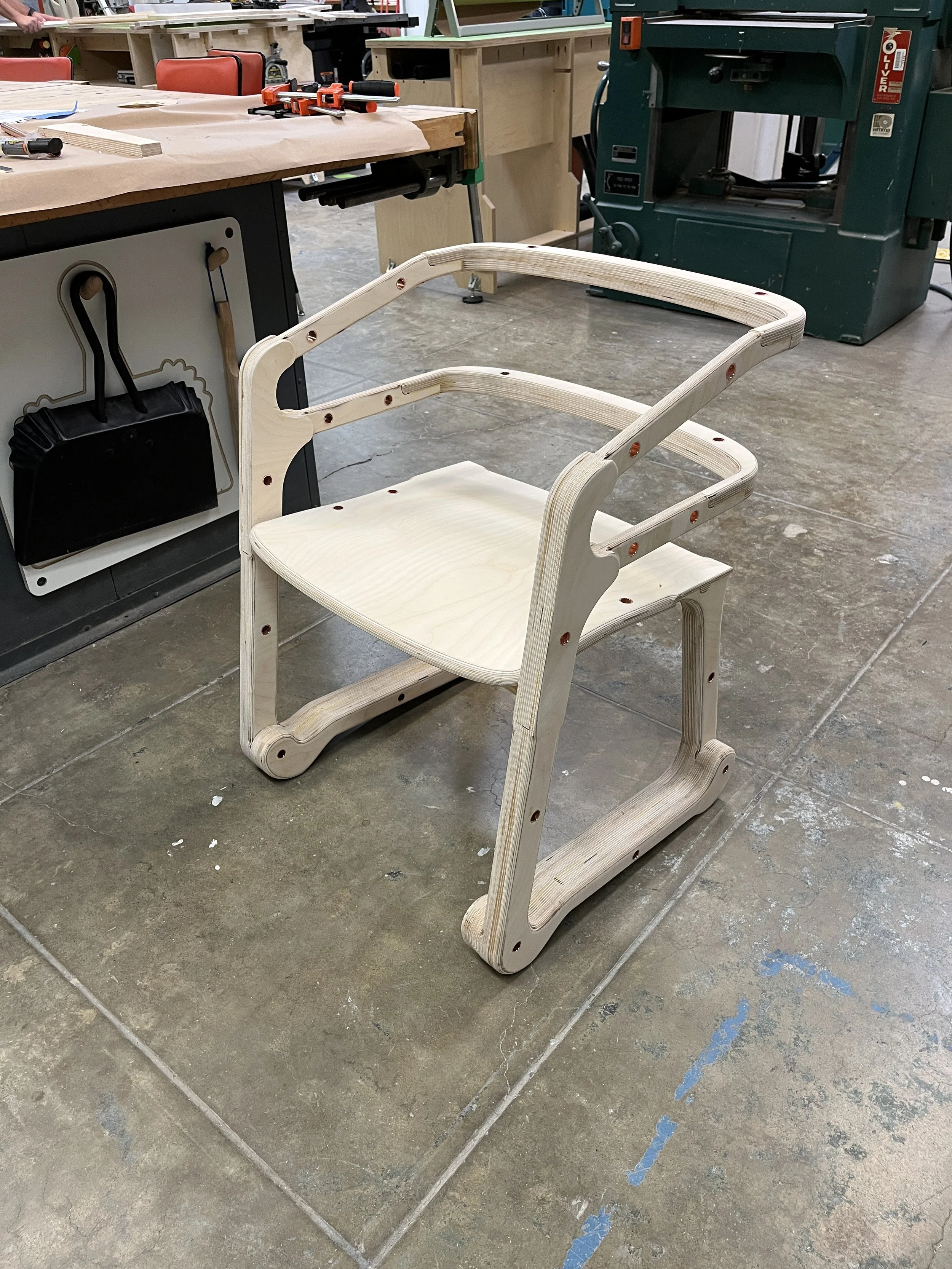 Chairs were printed at 1/6th scale to test out ergonomics with a 1/6th scale human model.