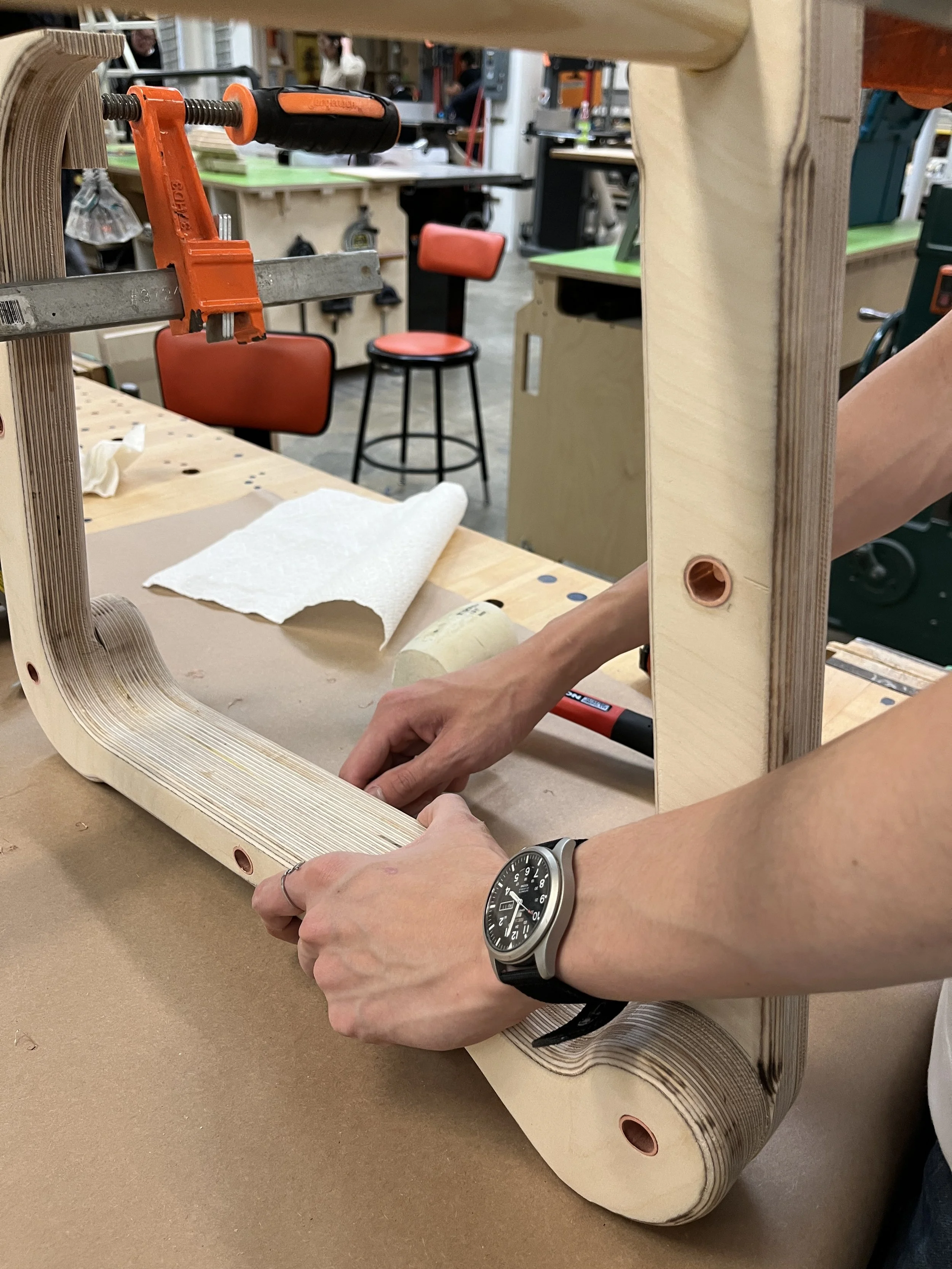 Once the entire wood assembly was together, the remaining rough edges and transitions were smoothed out.