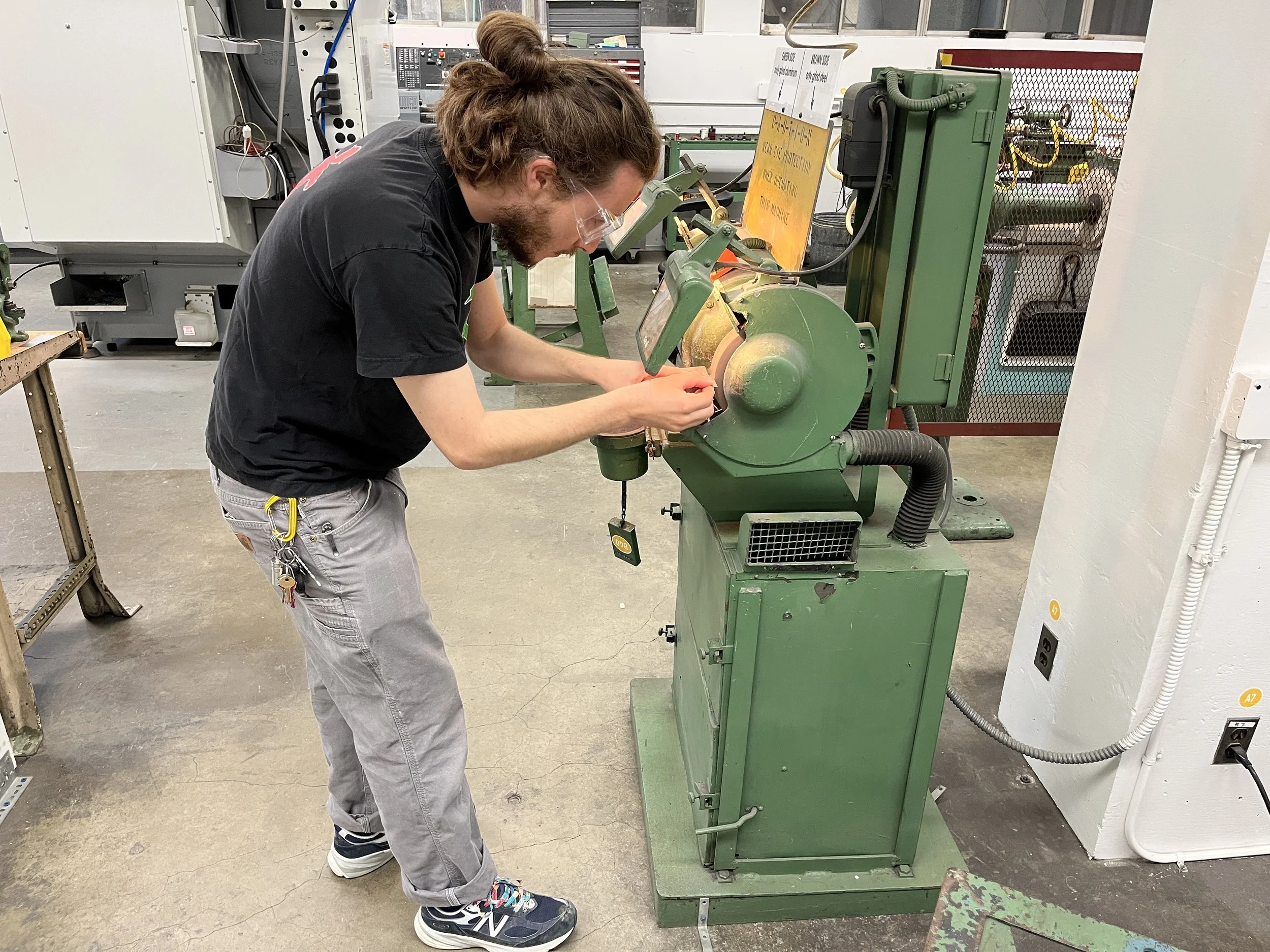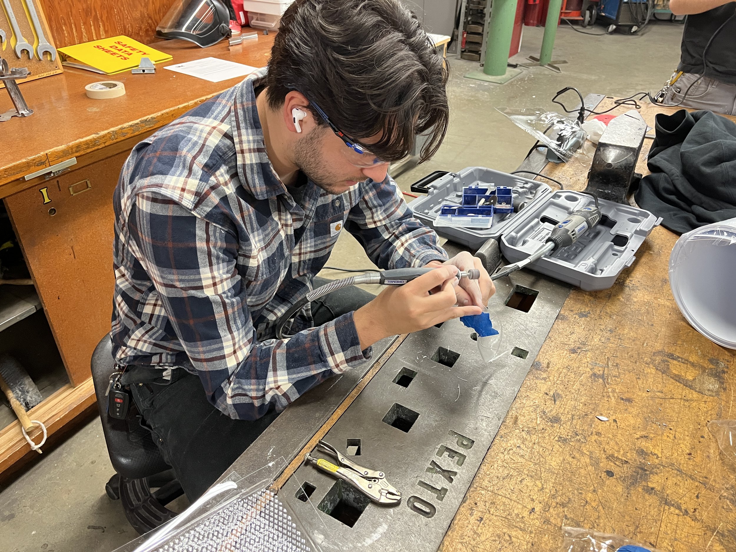 A Dremel was used to trim off the flashing from the vacuum formed polycarbonate, bringing it to its final shape.